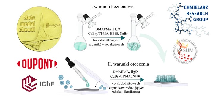 Wśród zwycięzców znalazła się także Kinga Ślusarczyk, członkini grupy badawczej Chmielarz Research Group (https://pchmielarz.v.prz.edu.pl/en/group-members), pełniąca funkcję wicesekretarza Koła Naukowego „IPSUM” (https://ipsum.prz.edu.pl/). Nagrodzona praca pt.,,Powierzchniowo inicjowana polimeryzacja rodnikowa z przeniesieniem atomu w skali mikrolitrowej” obejmuje wiele aspektów kluczowych w kontekście możliwości wykorzystania techniki ATRP na większą skalę, takich jak zmniejszenie stężenia kompleksu katalitycznego miedzi, a także objętości mieszaniny reakcyjnej wykorzystywanej na cm2 materiału, redukując znacznie nie tylko koszty procesu, ale również ilość produkowanych w procesie odpadów oraz wykorzystanie wody jako najbardziej ekologicznego rozpuszczalnika.
