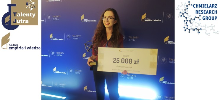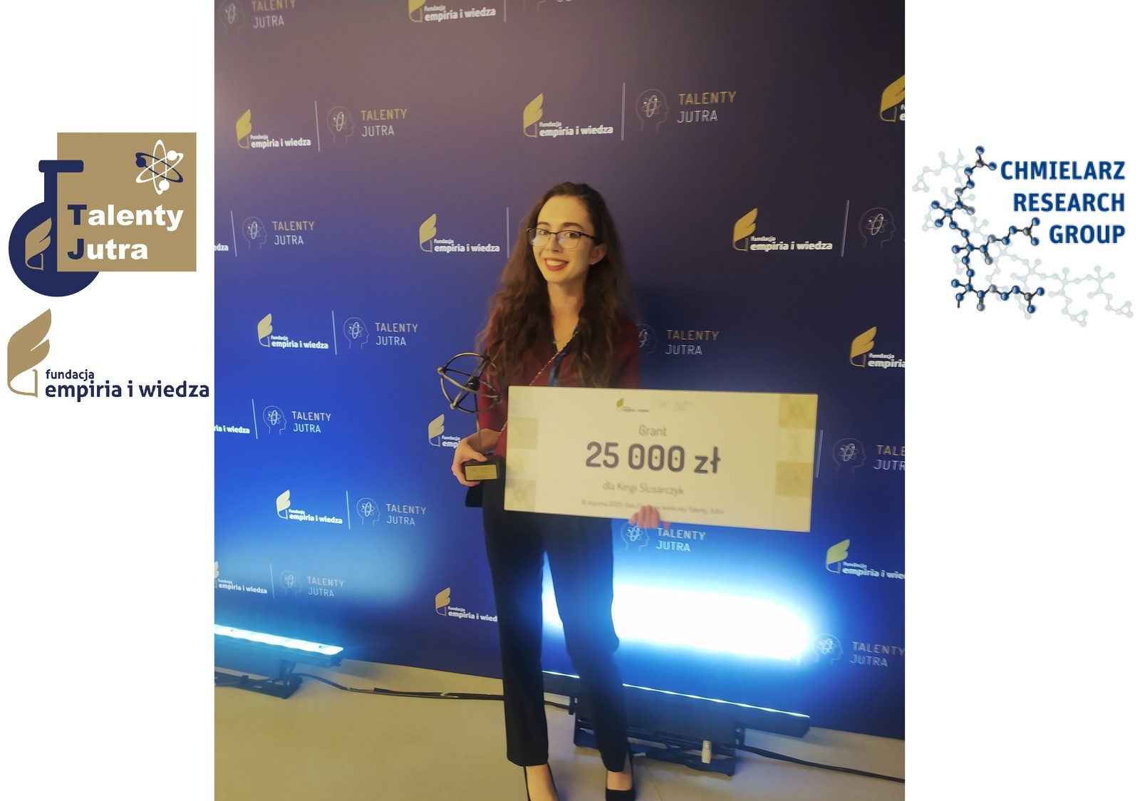 Z radością informujemy, że Kinga Ślusarczyk, studentka IV roku studiów inżynierskich na kierunku Technologia chemiczna na Wydziale Chemicznym Politechniki Rzeszowskiej (Chmielarz Research Group) została laureatką programu Talenty Jutra finansowanego przez Fundację Empiria i Wiedza i otrzymała grant w wysokości 25 000,00 PLN na kontynuację swojej pracy badawczej dotyczącej modyfikacji powierzchni polieteroeteroketonu (PEEK) technikami powierzchniowo inicjowanej polimeryzacji rodnikowej z przeniesieniem atomu (SI-ATRP).