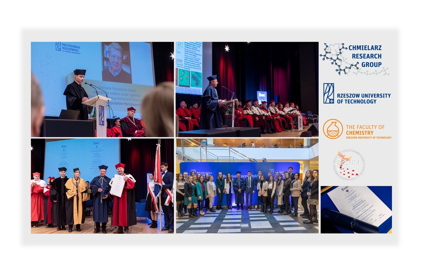 Światowej sławy naukowcowi prof. Krzysztofowi Matyjaszewskiemu specjalizującemu się w dziedzinie chemii polimerów w uznaniu zasług dla rozwoju potencjału badawczego Wydziału Chemicznego został nadany tytuł doktora honoris causa Politechniki Rzeszowskiej. Profesor od kilku lat jest wymieniany jako potencjalny laureat Nagrody Nobla w dziedzinie chemii.
